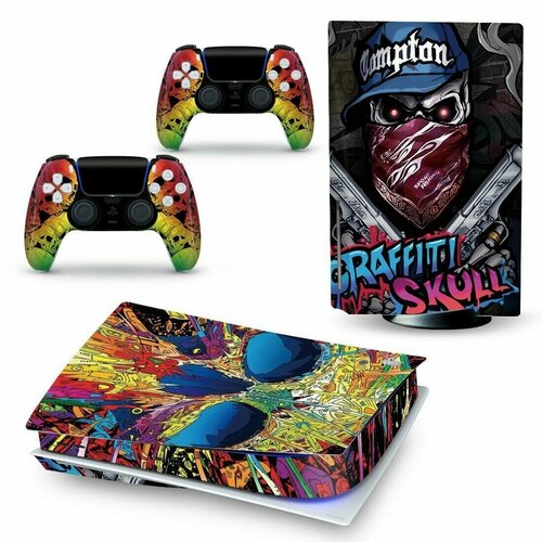 Наклейка виниловая защитная на игровую консоль Sony PlayStation 5 Fat Disc Edition, Граффити череп, полный комплект с геймпадами