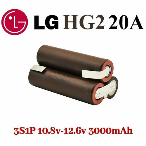 1 шт. Аккумуляторная сборка 18650 LG HG2 18В/21В 3000мАч 20А с никелевыми контактами.
