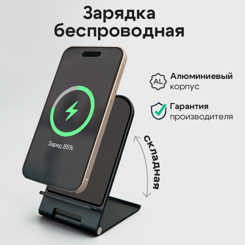 Беспроводное зарядное устройство / Зapядка / Подставка / Док станция для iPhone / Быстрая зарядка / Черный
