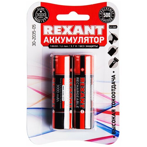 Аккумулятор Rexant 18650 20А Li-ion 3000mAH 3.7V без защиты 2шт 30-2035-05