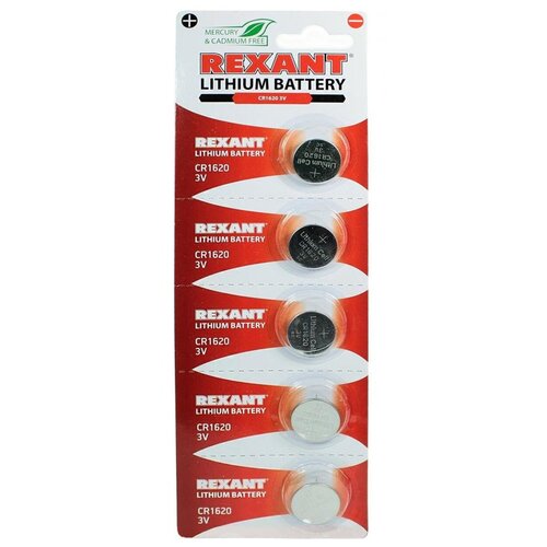 Батарейка литиевая "Rexant", тип СR1620, 3В, 5 шт
