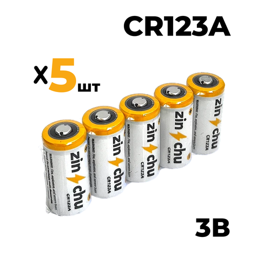 Батарейка CR123A 3V, 5 шт. Zinchu