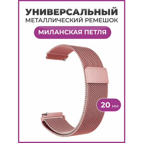 Металлический магнитный ремешок 20 мм Миланская петля серебро для Amazfit Bip /GTR / GTS / Galaxy Watch / Gear / Huawei / Honor / Garmin/розовое-золото