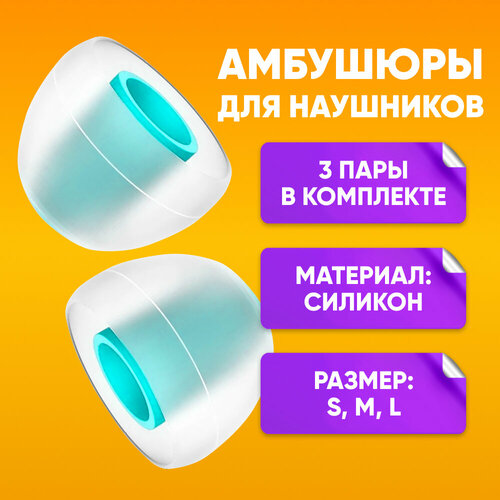 Цены на Амбушюры насадки для наушников из 3 пар ALC07, размеры S M L, прозрачно зеленые белый, голубой в г. Воронеж