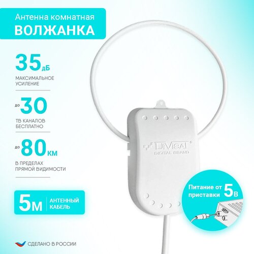Антенна телевизионная Divisat Волжанка 5в. 5м. комнатная, активная