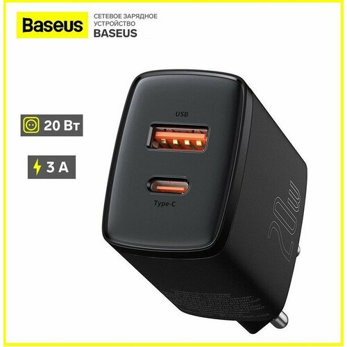 Зарядный блок Type C+1USB Baseus Compact 20W EU 1USB/1C, черное