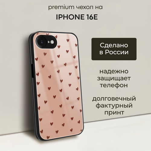 Чехол на Apple iPhone 16e / Айфон 16е с объемным принтом "Красные сердечки на розовом фоне"