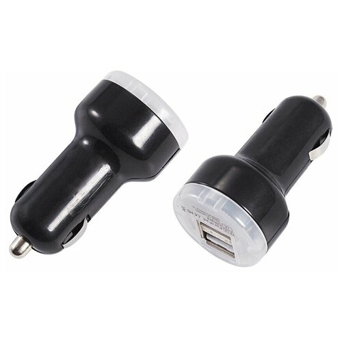 Автозарядка в прикуриватель с двумя портами USB (5 V, 1000 + 2100 mA) с индикацией, цвет: Белый