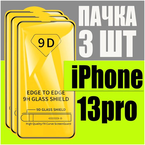 Защитное стекло для iPhone 13 PRO / комплект 3 шт для Айфон 13 про / 9D на весь экран