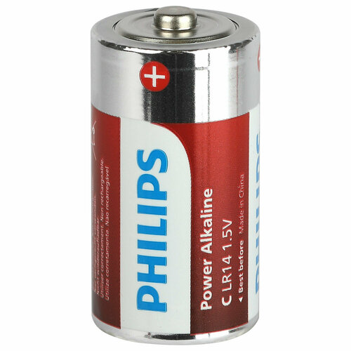 Батарейки алкалиновые комплект 2 шт, PHILIPS Power Alkaline, C (LR14, 14А), блистер