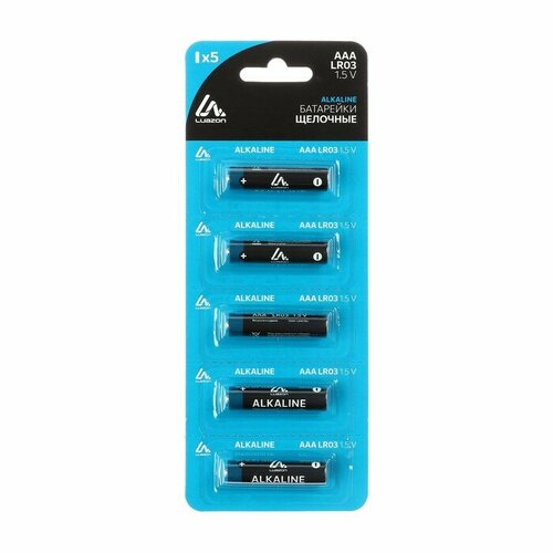 Батарейка алкалиновая (щелочная) LuazON, AAA, LR03-5BL, отрывной блистер, 5 шт 9802429