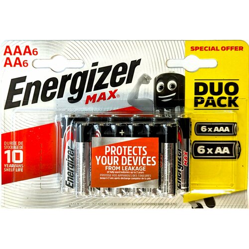 Батарека Energizer MAX набор 6xAAA + 6xAA, 12 штук в блистере (6 штук мизинчиковых + 6 штук пальчиковых)