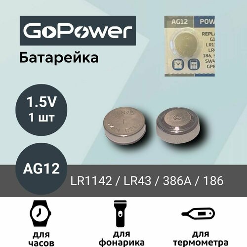 Батарейка GoPower AG12 (LR1142, LR43, 386A, 186) Alkaline 1.55V (1 шт)