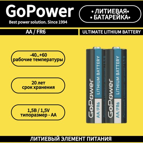 Батарейка GoPower FR6 AA BL2 (2 шт.) Lithium 1.5V