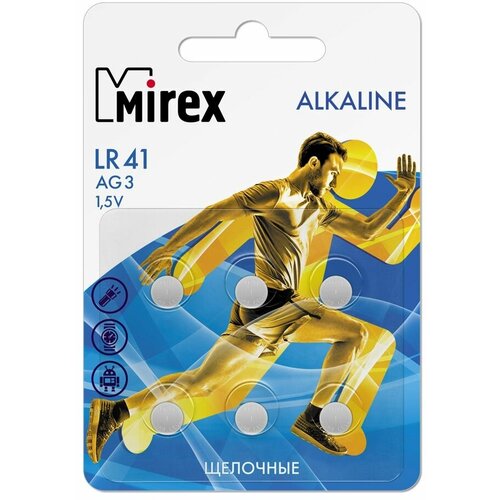 Батарейки щелочная Mirex AG3 / LR41 1,5V 6 шт , ecopack
