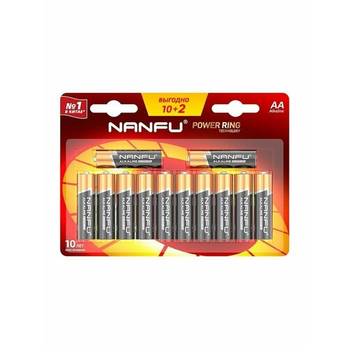 Батарейка Nanfu щелочная, AA, 10+2 шт.