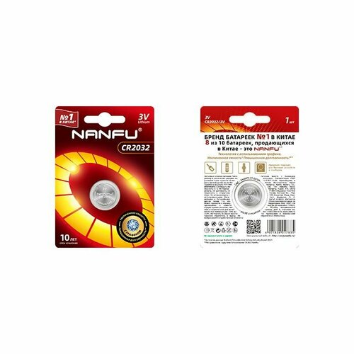 Батарейка Nanfu щелочная, 3 В, 10 лет (CR2032 1B)