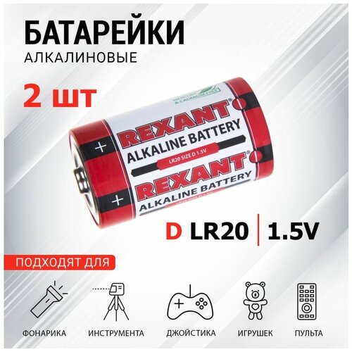 Элемент питания алкалиновый REXANT LR20/D 1.5V 15200мАч ( уп. 2 шт.)