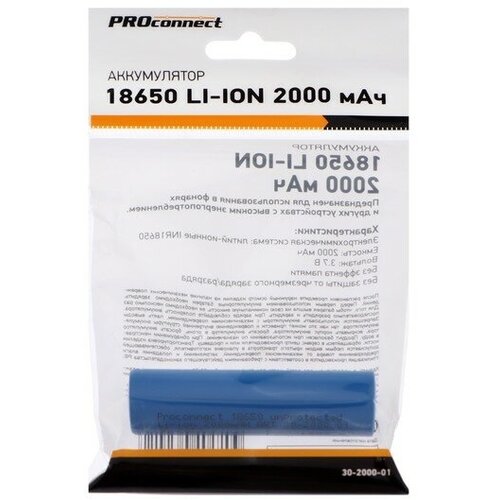 Аккумулятор 18650 unprotected, Li-ion, 2000 мАЧ, 3.7 В, индивидуальная упаковка