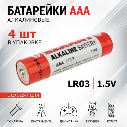 Долговечные алкалиновые батарейки типа AAA LR03 мизинчиковые, 1.5 В, 4 шт