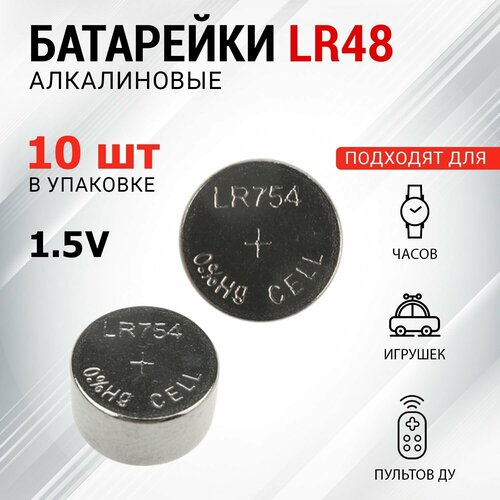 Батарейки REXANT типа LR48 (AG5, LR754, G5, 193, GP93A, 393, SR754W) 10 штук в упаковке