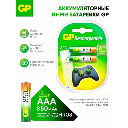 Аккумулятор Ni-Mh 850 мА·ч 1.2 В GP Rechargeable Series AAA, 2 шт.