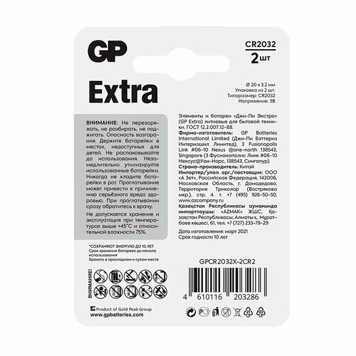 Аккумулятор Lithium 160 мА·ч 3 В GP Lithium Cell CR2025, 5 шт.