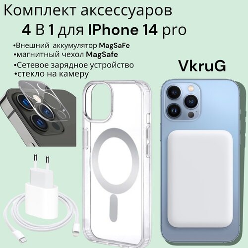 Комплект для Iphone 14 pro/Айфон 14 pro: внешний аккумулятор Magsafe 5000 mAh, чехол Магсейф , зарядка для айфона, защита камеры