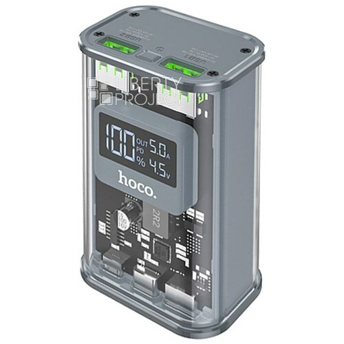 Портативный внешний аккумудятор Hoco J105 Led Dynamic Display, PD 20W/SCP 22.5W + Кабель зарядки, Серый+Прозрачный