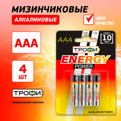 Батарейки мизинчиковые ААА Трофи LR03 4BL ENERGY POWER Alkaline 4 шт