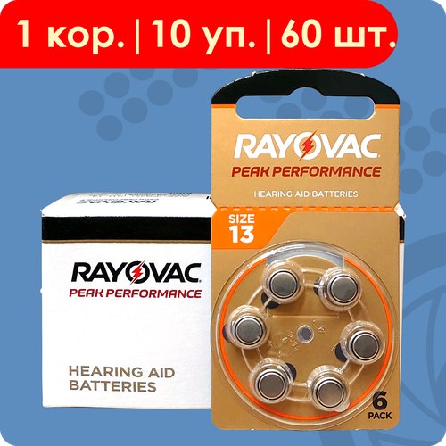 Rayovac 13 Оранжевый (ZA13) | Peak, 1.45 Вольт, Воздушно-цинковые (ZincAir) батарейки для слуховых аппаратов - 60шт
