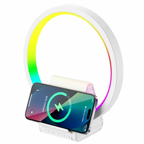 Колонка с беспроводной зарядкой и лампой WiWU 3 in 1 Wireless Charging Desk Lamp Speaker Y1 15 Вт White