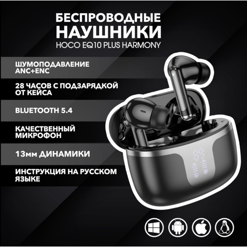 Беспроводные наушники TWS Hoco EQ10 Plus Harmony ANC+ENC цвет: Черный