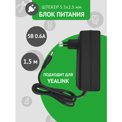 Универсальный блок питания 5В 0.6А, штекер 5.5х2.5 мм. Подходит для YEALINK. БЕЗ индикатора работы
