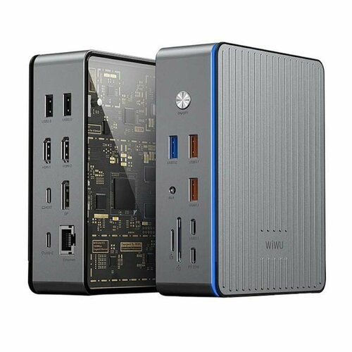 Док-станция 16 в 1 WiWU W1601 Matrix с поддержкой 4 экранов M2 Mac одновременно, быстрая зарядка PD 100 Вт