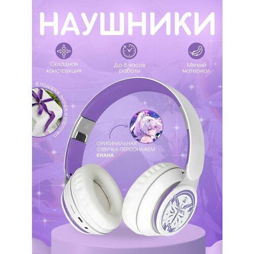 Наушники беспроводные со встроенным микрофоном Bluetooth Honkai Impact Хонкай Импакт Киана с сенсорным управлением, блютуз гарнитура для телефона и компьютера, подарок детям