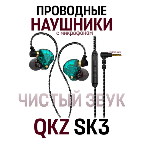 Внутриканальные наушники QKZ SK3 проводные Hi-Fi наушники, 3.5 мм mini jack, бирюзовый