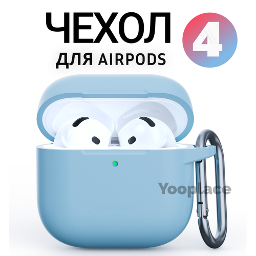 Чехол для AirPods 4 c карабином Soft-Touch премиум 2024 / Чехол для Аирподс 4 / Yooplace, цвет: голубой (Light blue)