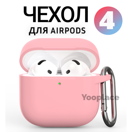 Чехол для AirPods 4 c карабином Soft-Touch премиум 2024 / Чехол для Аирподс 4 / Yooplace, цвет: Розовый (Pink)
