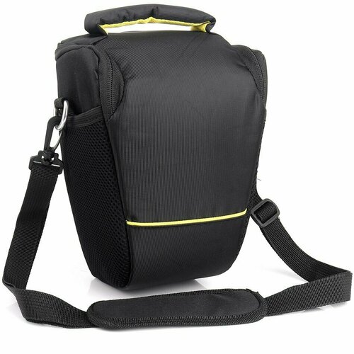 Чехол-фотосумка для фотоаппарата DSLR черного цвета с желтой окантовкой