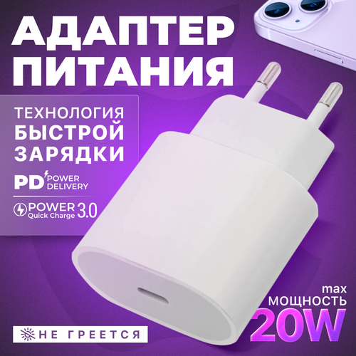 Быстрая Зарядка для iPhone SE/XR/11/12/12/13/14Pro и iPad, USB- C, TYPE- C (20W / 3.1A) Сетевой блок питания Адаптер /СЗУ для айфона Type- C