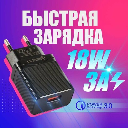Быстрая зарядка для телефона с кабелем 1 м / Сетевой блок питания 18W/QC3.0A / Быстрое зарядное устройство для смартфона / Сетевой адаптер /
