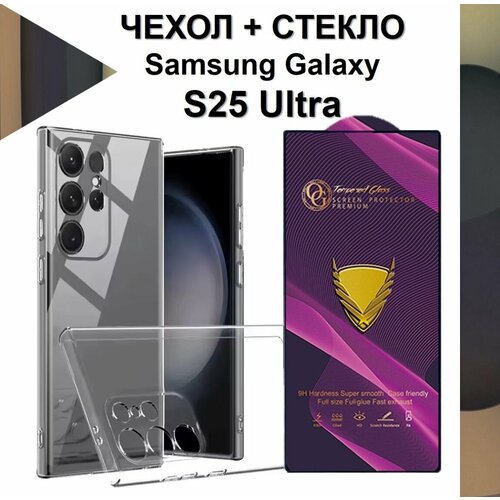 Комплект 2 в 1: Прозрачный чехол с защитой камеры + полноэкранное стекло для Samsung Galaxy S25 Ultra / Галакси С25 Ультра