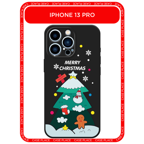Черный матовый чехол на Apple iPhone 13 Pro / Айфон 13 Про с принтом Christmas tree white