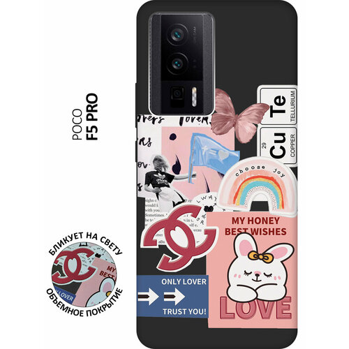 Матовый чехол Cute Stickers для Poco F5 Pro / Поко Ф5 Про с 3D эффектом черный
