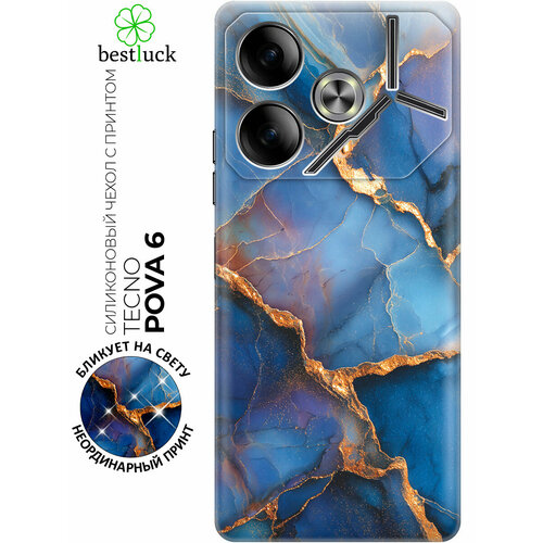 Силиконовый чехол на Tecno Pova 6 с принтом "Синий мрамор с золотом"