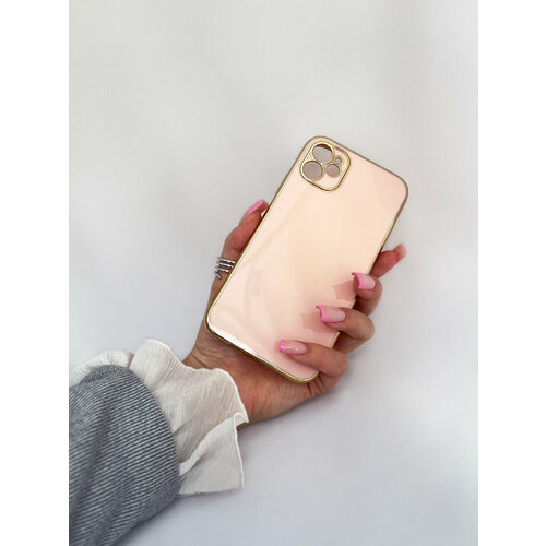 Противоударный глянцевый чехол розовый на Apple iPhone 15