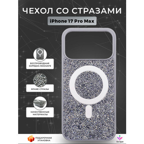 Чехол со стразами с MagSafe для iPhone 17 Pro Max, iGrape (Серебристый) / чехол на айфон 17 про макс