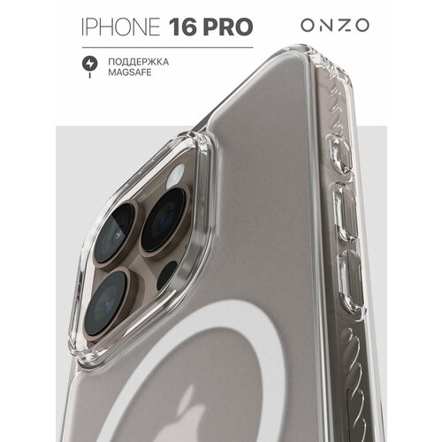 Прозрачный чехол мэгсэйф для iPhone 16 Pro / Матовый бампер на Айфон 16 Про с ребристыми гранями