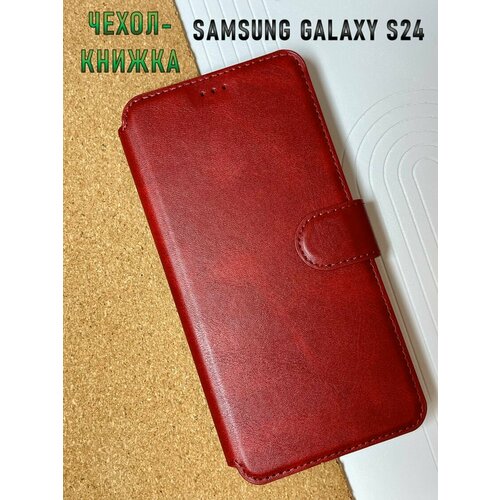 Чехол книжка для Samsung Galaxy S24 кожаный с магнитной застежкой, Самсунг Галакси ЭС 24 , с функцией подставки